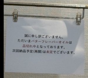 私は映画館で映画を観る時には必ずバターフレーバーオイルをかけたポップコーンが必要です。昨年9月に地元の映画館に行った時にこんな貼り紙があり、ショックで映画を観るのを諦めてしまいました…