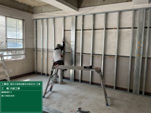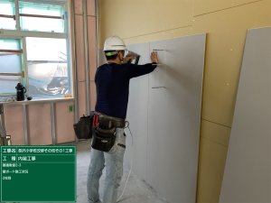 ・2F普通教室 【軽量鉄骨下地施工状況・ボード貼り施工状況】